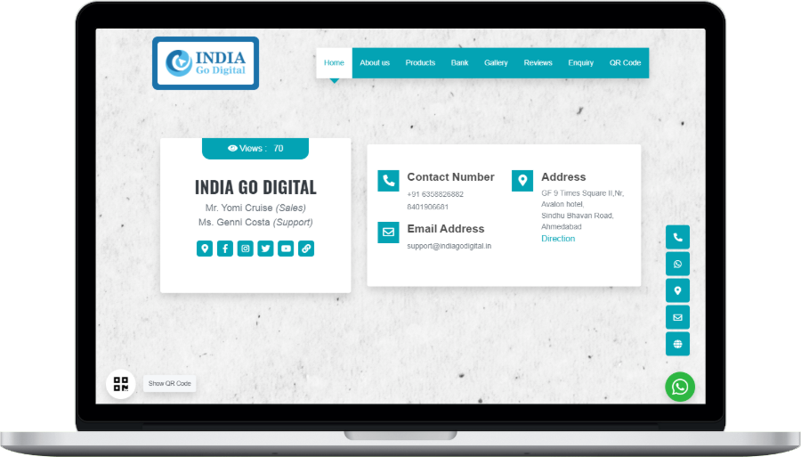 We have unique bunch of layouts as per your need. You can change your digital card & website design as many time as you want from below given beautiful templates. Please click on View Demo to see the design. Website Option is also there..!! Don't forget to check that out as well...